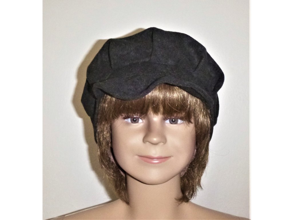 černý dobový čepec, retro černá čepice, viktoriánský chlapec, Oliver Twist, chuďas, loupežník, novinář, dělník, venkovan, rybář, řidič, detektiv, vlakvedoucí, železničář, rybář, venkovan, farmář, malíř, cestovatel, dobrodruh